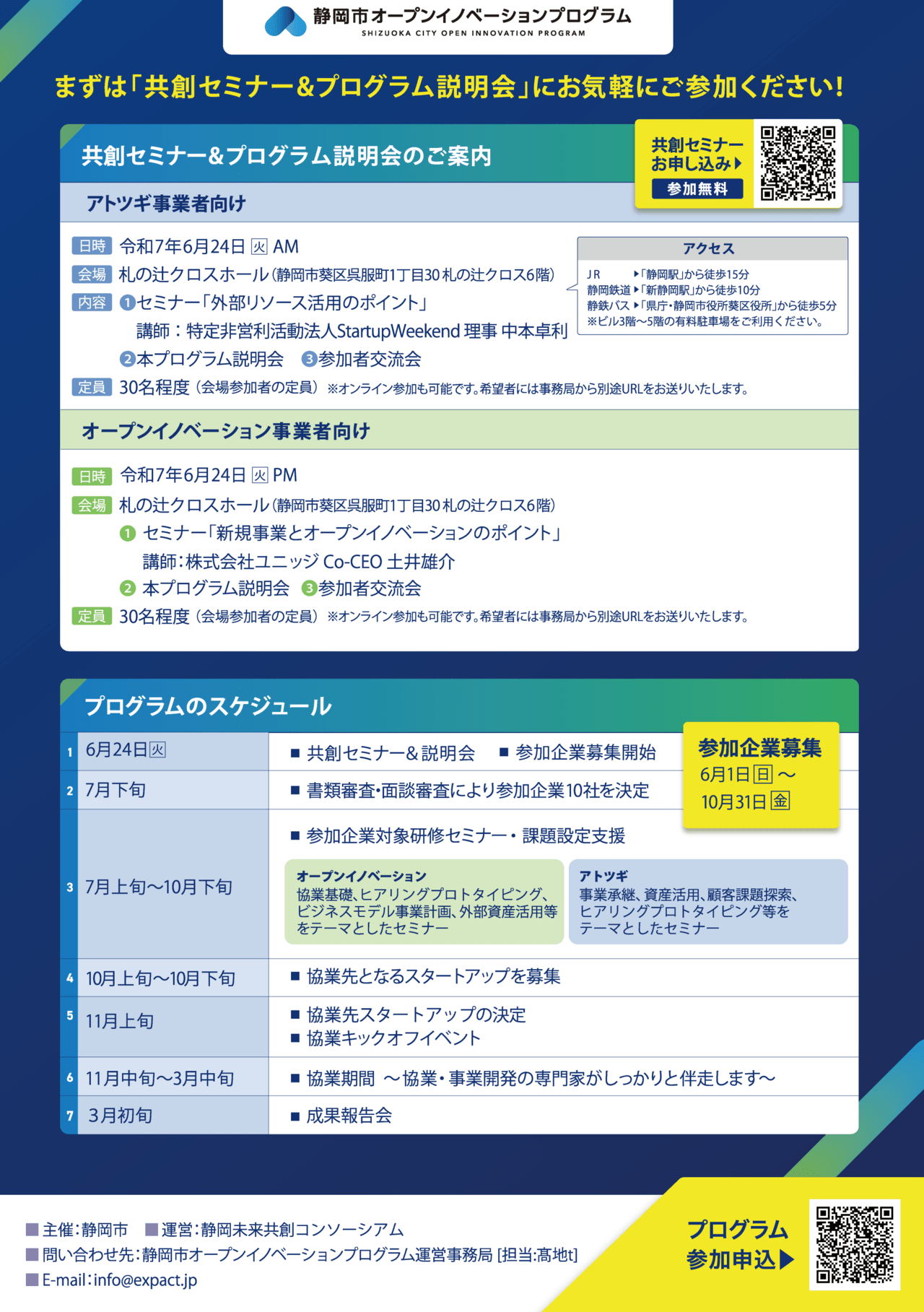 EXPACT株式会社、株式会社アルファドライブ、静岡鉄道株式会社、株式会社静岡新聞社を中心とした『静岡未来共創コンソーシアム』が、静岡市の「令和7年度静岡市オープンイノベーション等創出支援事業運営業務」を受託。